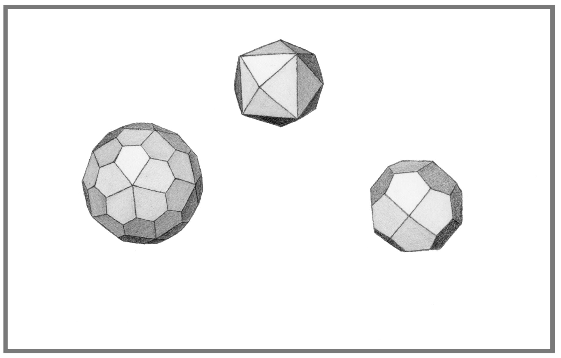 Shaded graphite drawings of polyhedra
